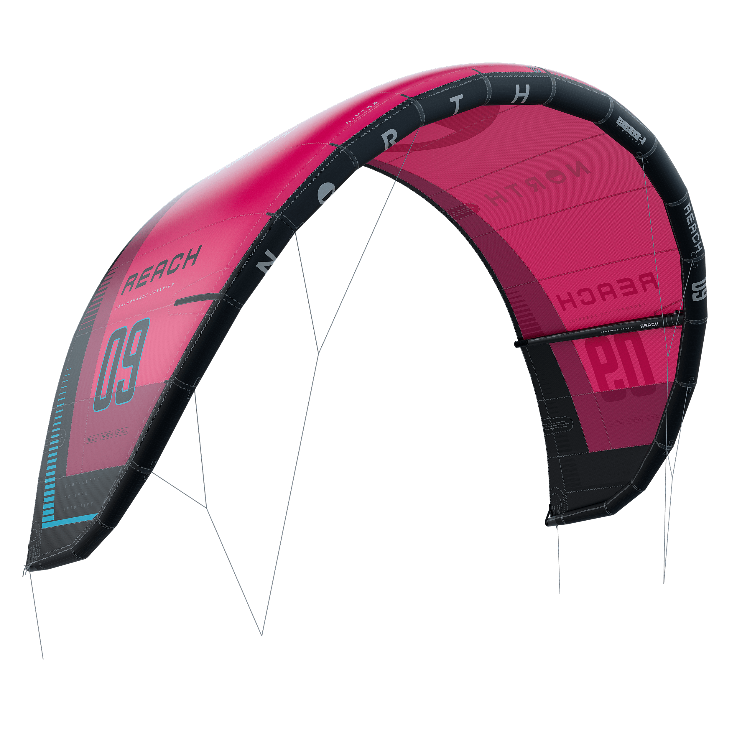 Para 2025, la Reach es más juguetona y de vuelo más suave, con una dirección más directa y una recuperación más dinámica. Ágil y fácil de pilotar, pero ahora con un alargamiento ligeramente mayor y una forma más suave y aerodinámica que es incluso más estable en los kite loops.